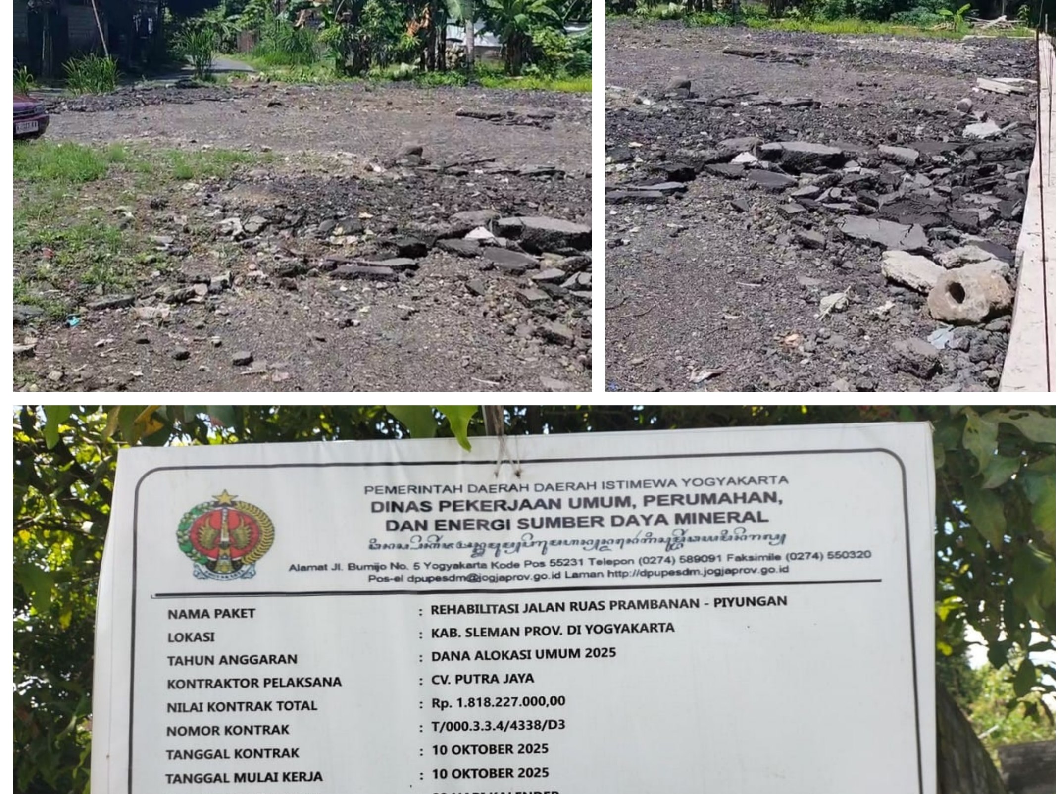 CAKRARAJAWALI.COM, SLEMAN — Proyek Rehabilitasi Jalan Ruas Prambanan–Piyungan di Kabupaten Sleman, Daerah Istimewa Yogyakarta, yang dibiayai Dana Alokasi Umum (DAU) Tahun Anggaran 2025, kembali menuai sorotan publik.