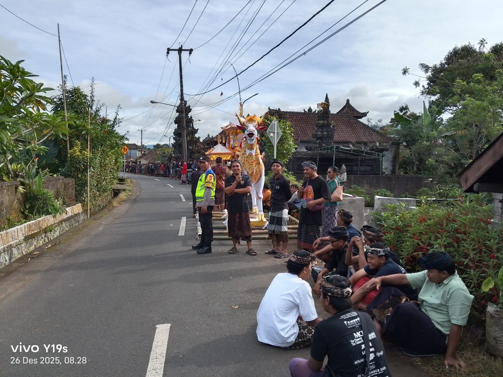 Selain melakukan pengamanan lalu lintas, Bhabinkamtibmas juga turut memantau jalannya kegiatan, berkoordinasi dengan panitia upacara serta perangkat desa adat guna mencegah terjadinya gangguan keamanan dan kemacetan.
