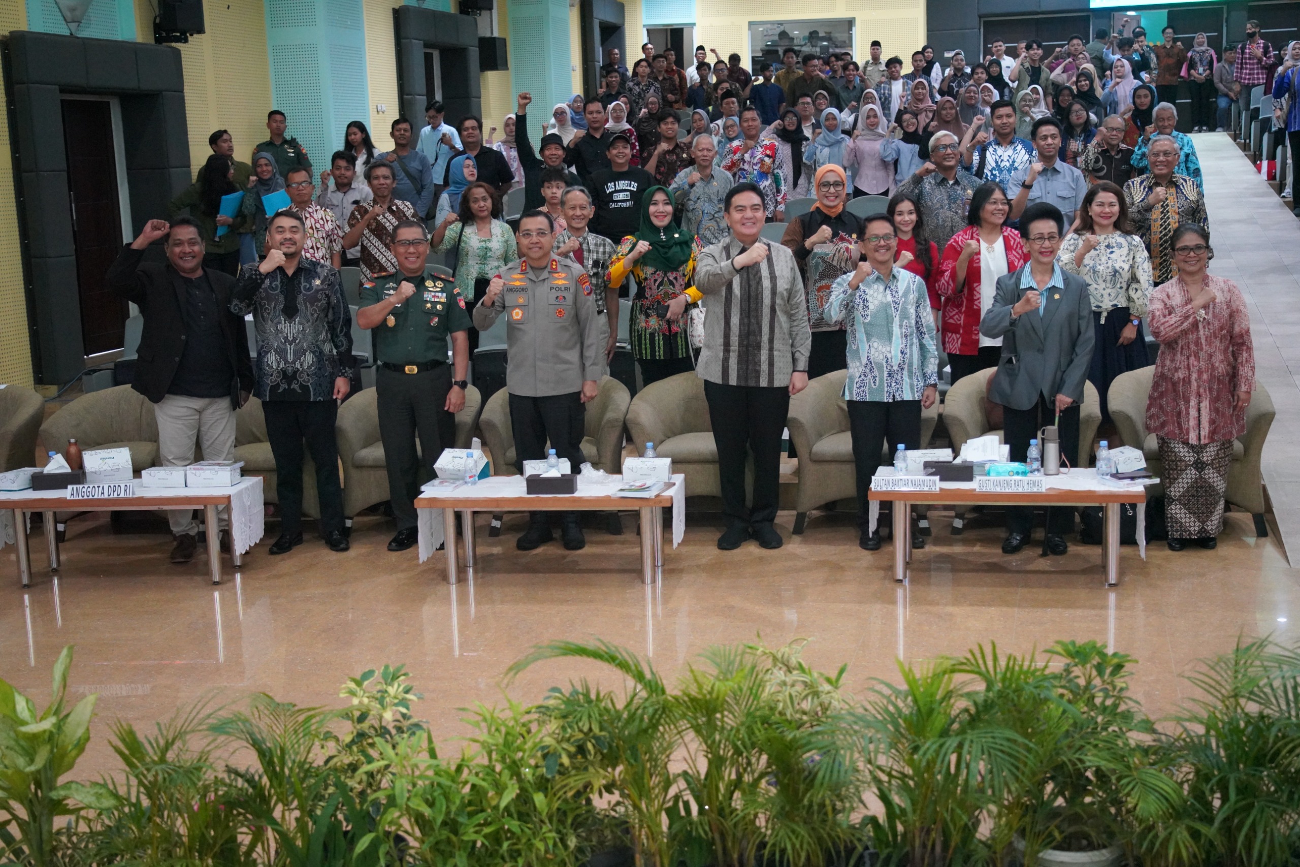 Acara tersebut juga menghadirkan narasumber Wakil Ketua Komisi Kajian Ketatanegaraan MPR RI Dr.H.Ajiep Padindang,S.E.,M.M. dan Bawaslu RI Lolly Suhenty.