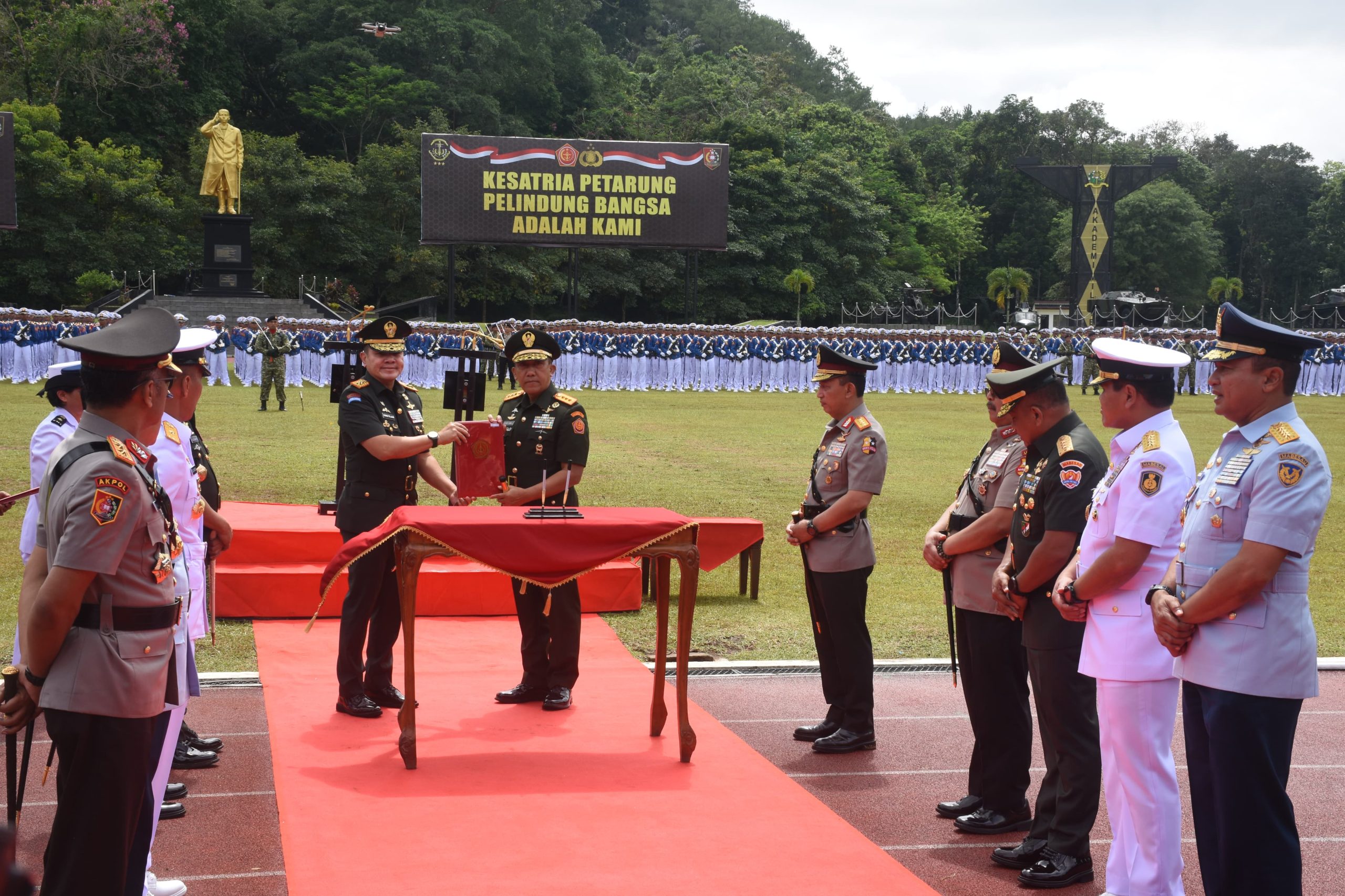 “Dengan kelulusan ini kalian berhak menyandang pangkat Prajurit Taruna dan Bhayangkara Taruna, namun pangkat ini bukan semata status melainkan amanah yang mengikat kalian untuk menjaga kehormatan di dalam institusi, menjunjung tinggi nilai Sapta Marga dan Tribrata serta menunjukkan integritas dalam setiap langkah pengabdian” pungkasnya.