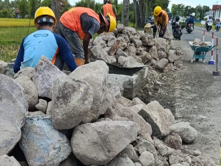 Dari dokumentasi yang diperoleh Jum’at, 6/2/2026. Material batu yang digunakan pada pekerjaan pondasi diduga menggunakan batu blondos baru, yang dinilai tidak sesuai dengan standar konstruksi untuk pekerjaan pasangan batu.