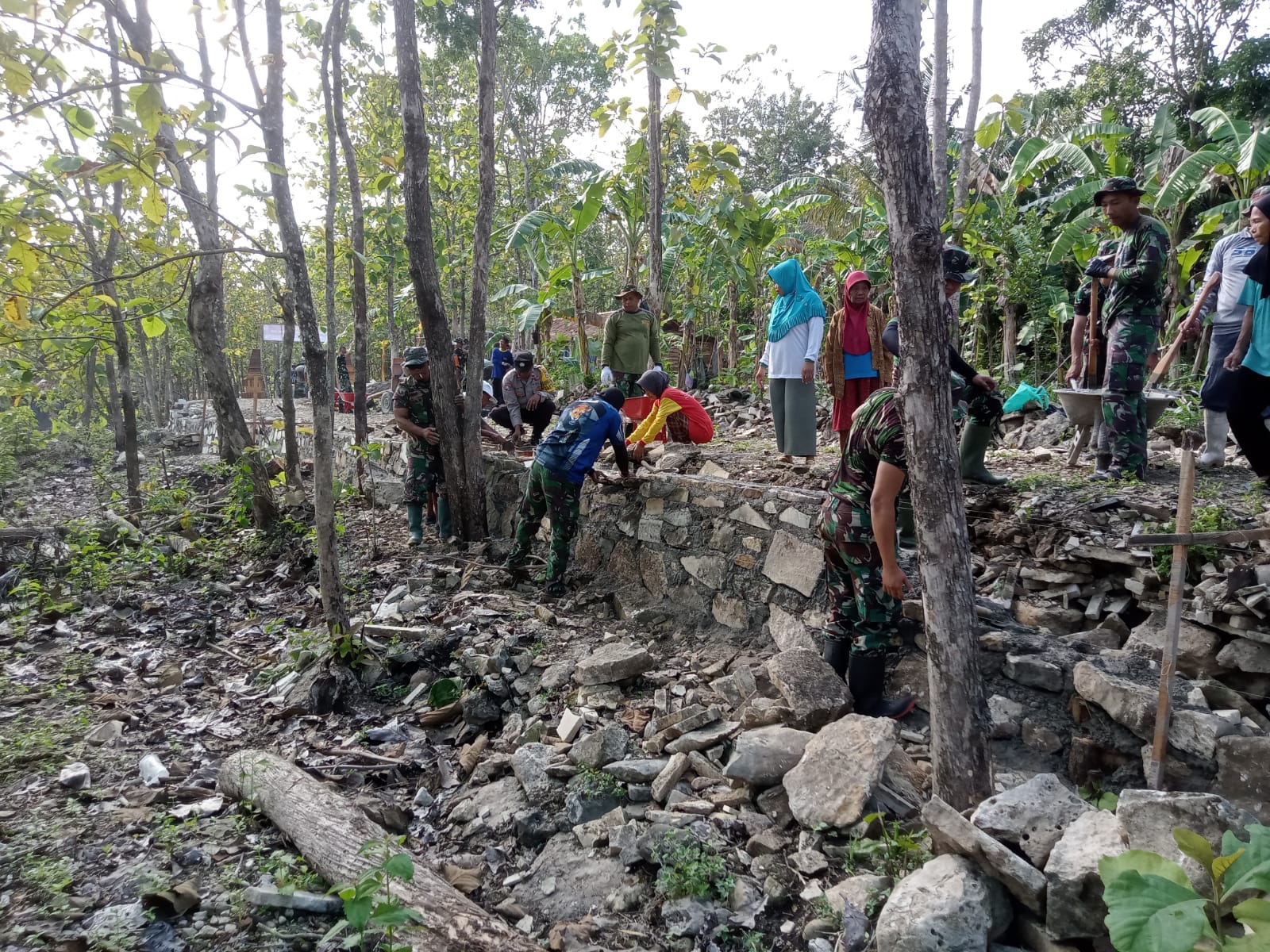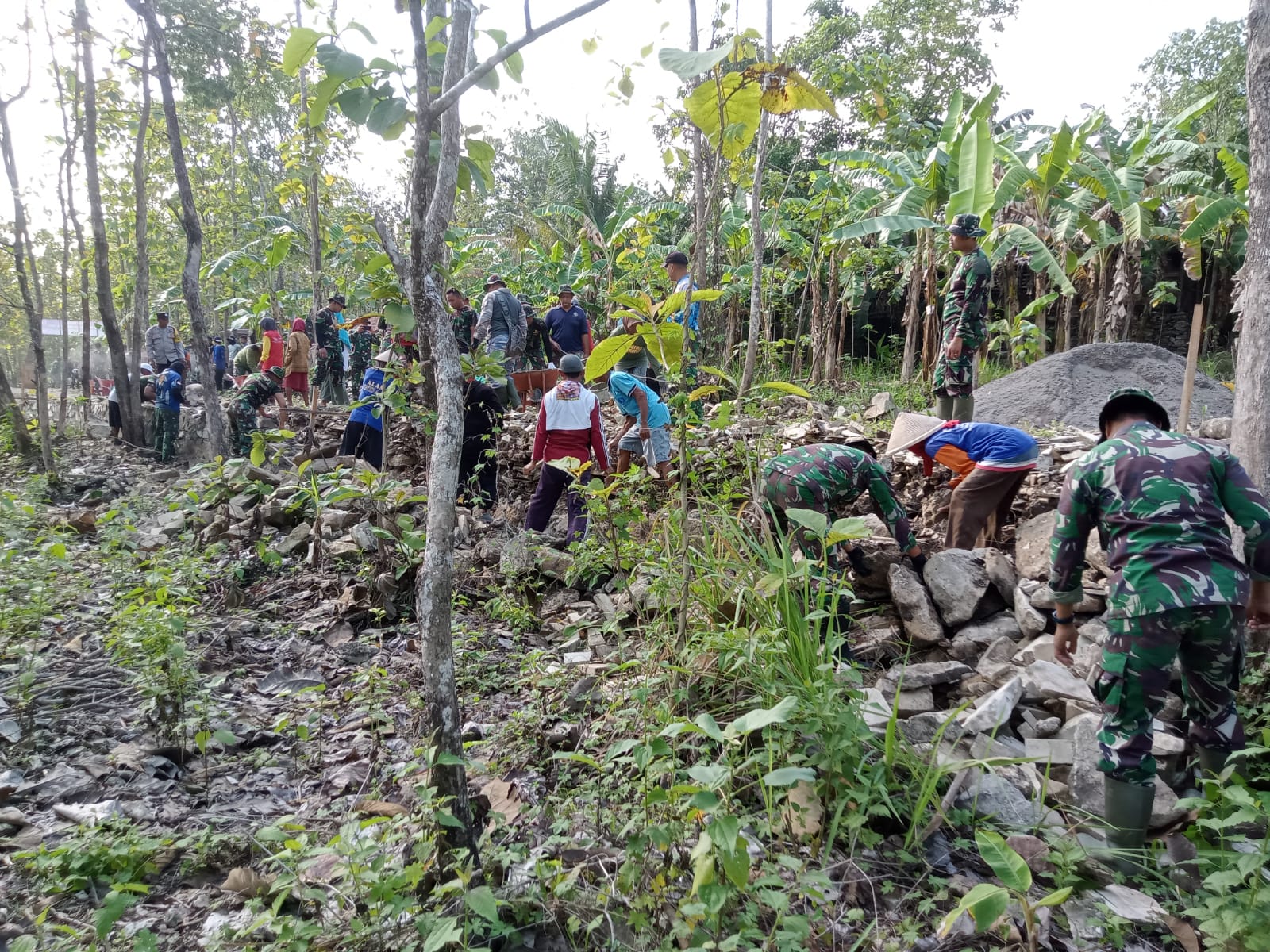 “Para personil Kodim 0730/Gunungkidul yang tergabung dalam Satgas TMMD bersama masyarakat bahu – membahu mengerjakan sasaran fisik pembangunan talud,” ujar Serka Turmudhi di sela – sela pengerjaan fisik.