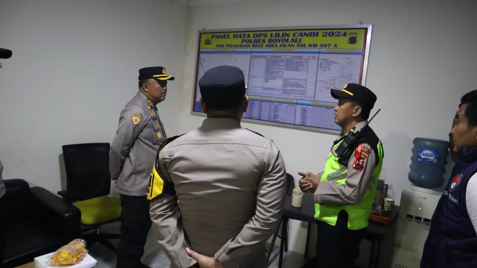 Pada pukul 20.00 hingga 20.30 WIB, Plt. Kapolres beserta rombongan tiba di Pospam GT Boyolali. Dalam kunjungannya, Kapolres mengecek kesiapsiagaan personel serta kelengkapan sarana dan prasarana yang mendukung kelancaran arus lalu lintas. Ia mengingatkan pentingnya kewaspadaan dan responsif terhadap setiap potensi gangguan di lapangan.
