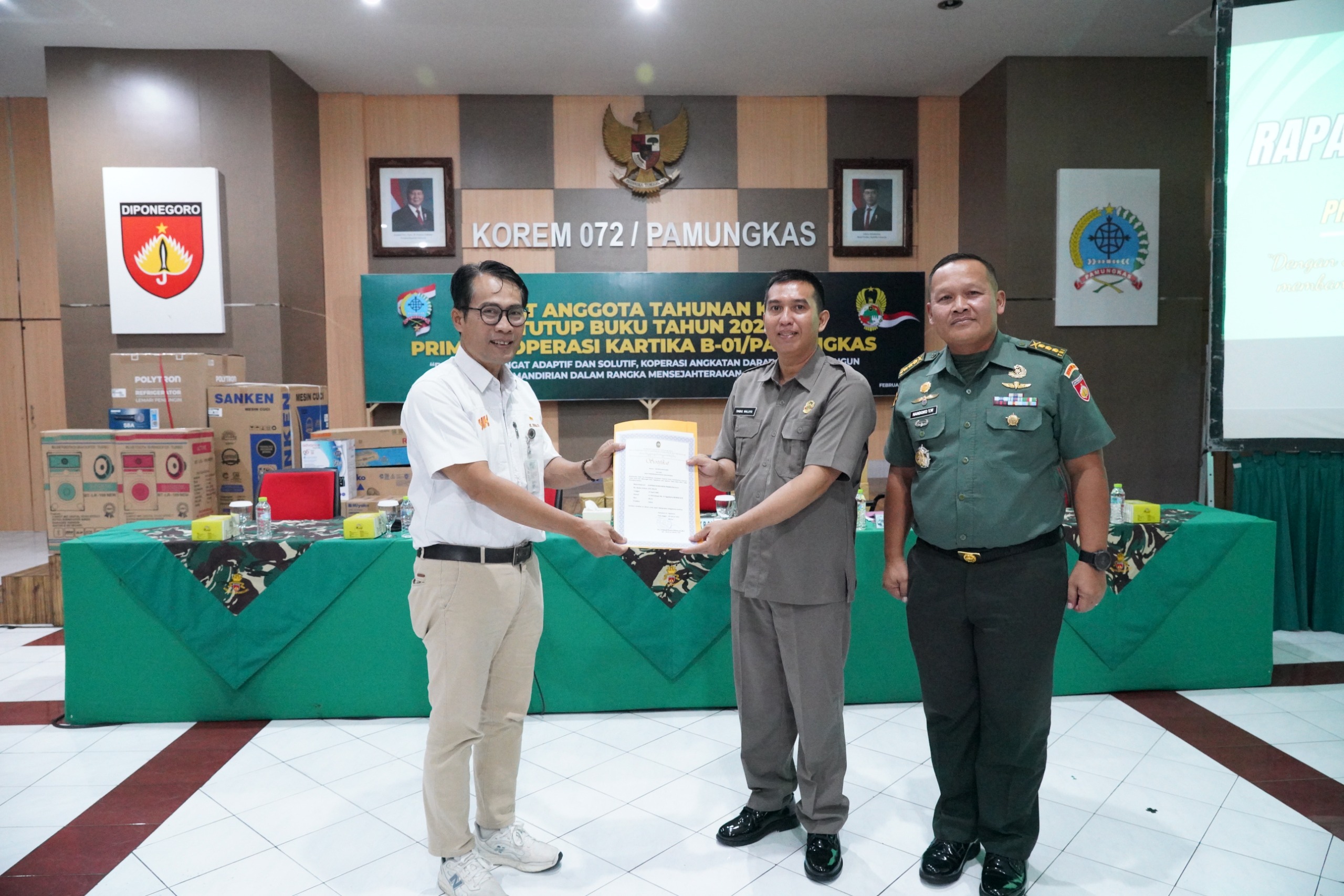 Yogyakarta, www.cakrarajawali.com // Korem 072/Pamungkas menyelenggarakan Rapat Anggota Tahunan (RAT) Primkop Kartika B-01 Pamungkas ke-57 Tutup Buku Tahun 2025 yang dibuka oleh Kasipers Kasrem 072/Pamungkas Kolonel Inf Handoko Yudho Wibowo, S.E., S.I.P., mewakili Danrem 072/Pamungkas bertempat di Aula Sugiyono Makorem 072/Pamungkas, Jalan Reksobayan No. 4 Kota Yogyakarta, Rabu (11/2/2026).