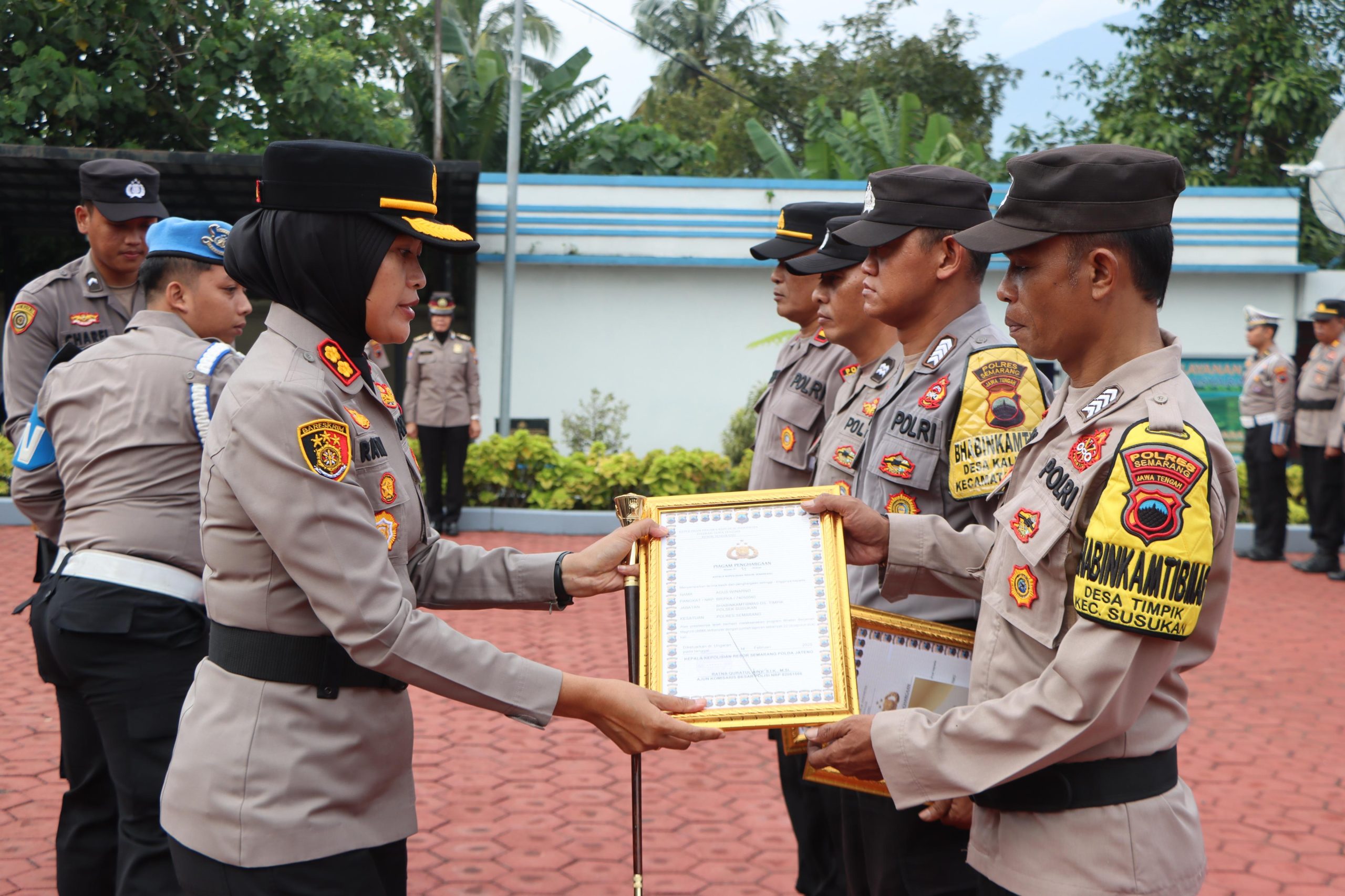 “Moment pemberian penghargaan ini bisa menjadi pemicu personel lain, untuk meningkatkan kinerja dilingkungan kerja dan pelayanan dilingkungan masyarakat.” Ungkap Kapolres saat memberikan sambutannya.