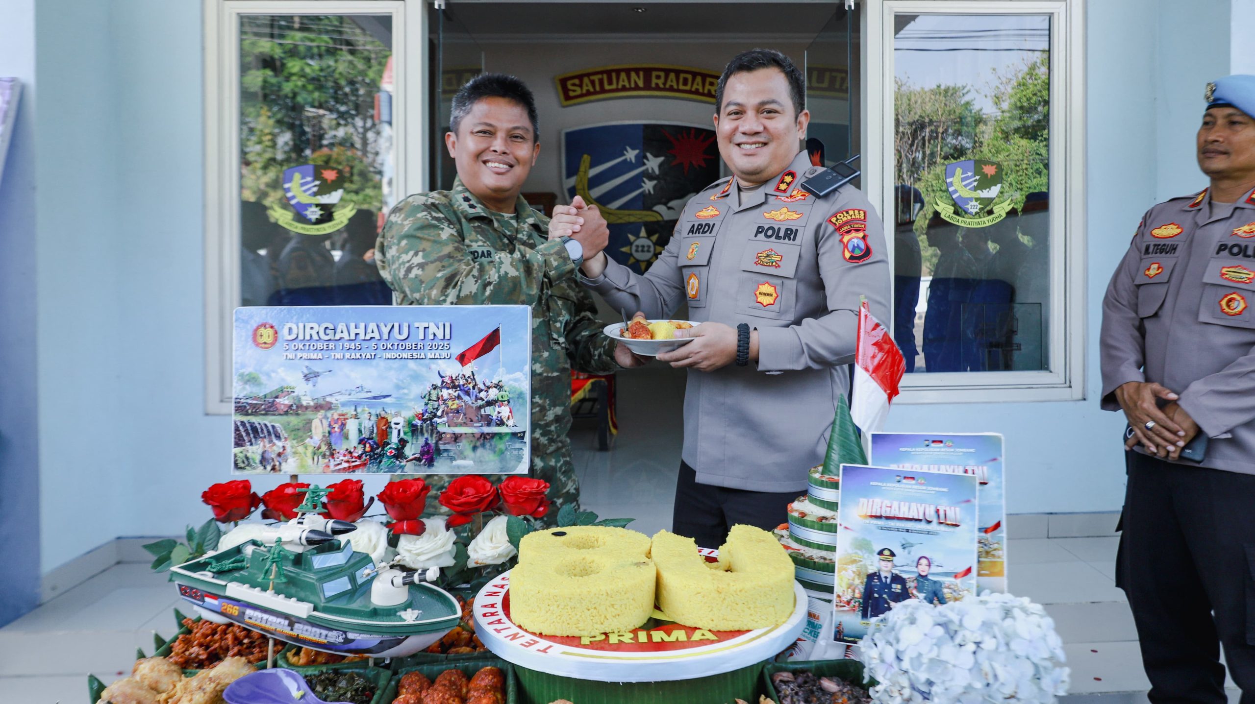 Moment HUT TNI ke 80, Kapolres Jombang Beri Kejutan kepada Kodim 0814 Jombang dan Sat Radar 222 Ploso Jombang