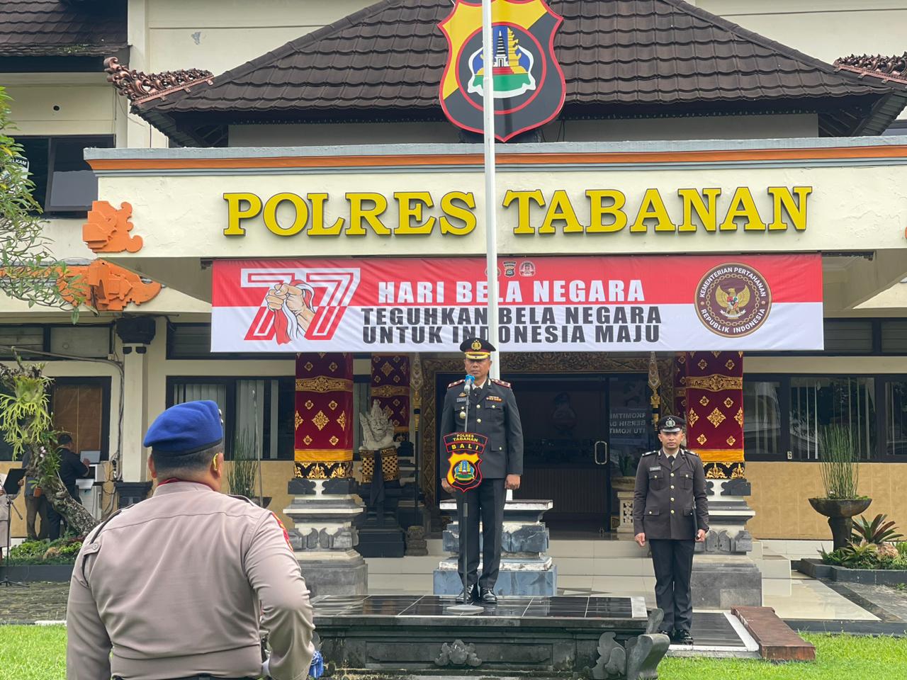 TABANAN, WWW.CAKRARAJAWALI.COM //Polda Bali – Polres Tabanan – Humas Tabanan. Polres Tabanan melaksanakan Upacara Peringatan Hari Bela Negara ke-77 Tahun 2025 pada Jumat, 19 Desember 2025, bertempat di Lapangan Apel Tathya Dharaka Polres Tabanan. Kegiatan yang berlangsung dari pukul 07.30 Wita hingga 08.00 Wita ini diikuti oleh Wakapolres Tabanan, para Pejabat Utama (PJU), Kapolsek jajaran, serta seluruh personel Polres Tabanan dengan penuh khidmat.