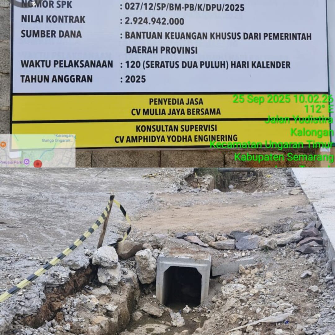 Kabupaten Semarang, www.Cakrarajawali.com | Tim investigasi Info Jateng News menemukan adanya sejumlah kejanggalan pada proyek rekonstruksi jalan di Dusun Rejowinangun, Desa Kalongan, Kecamatan Ungaran Timur, Kabupaten Semarang. Proyek bernilai hampir Rp3 miliar yang dibiayai melalui Bantuan Keuangan Khusus (Bankeu) Pemerintah Provinsi Jawa Tengah ini kini menjadi sorotan publik.