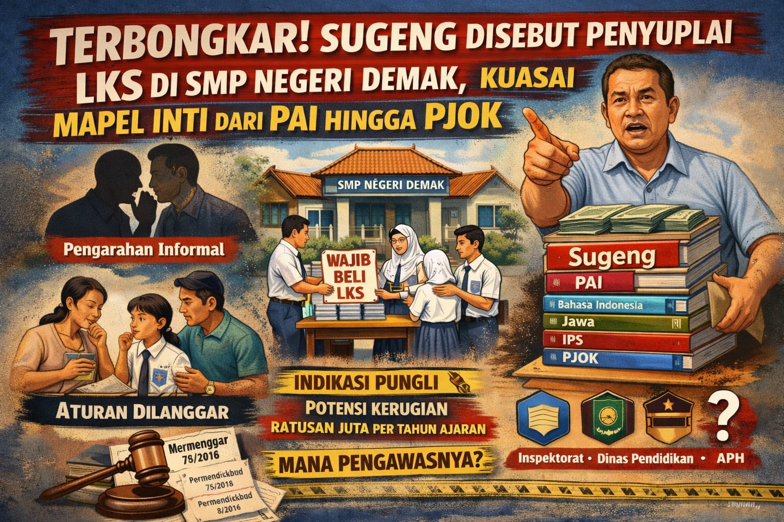 Informasi terbaru dari sumber internal menyebut nama Sugeng sebagai penyuplai/penerbit LKS yang mendominasi sejumlah mata pelajaran inti, memperluas indikasi adanya skema distribusi yang rapi, berulang, dan berlangsung bertahun-tahun tanpa pengawasan efektif. 7/1/2026