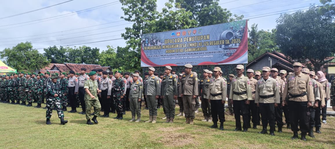 Gunungkidul, www.Cakrarajawali.com // Komandan Korem 072/Pamungkas Brigjen TNI Bambang Sujarwo, S.H., M.Sos., M.M. menutup secara resmi pelaksanaan TNI Manunggal Membangun Desa (TMMD) Reguler ke-126 Tahun 2025 Kodim 0730/Gunungkidul, bertempat di Rest Area Kalurahan Sambirejo, Kapanewon Semin, Kabupaten Gunungkidul, Kamis (6/11/2025).